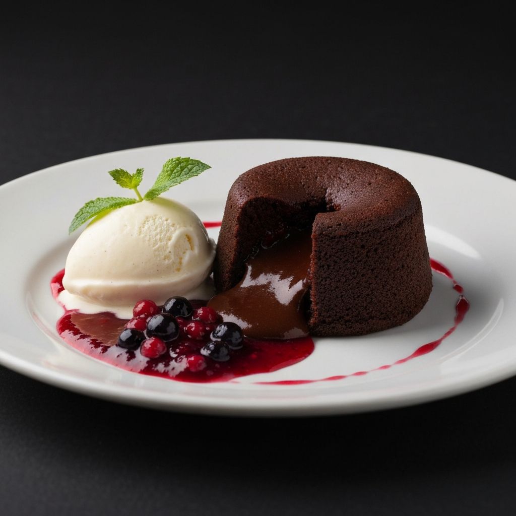 Warm valrhona chocolate fondant, vanilla bean ice cream, raspberry coulis.